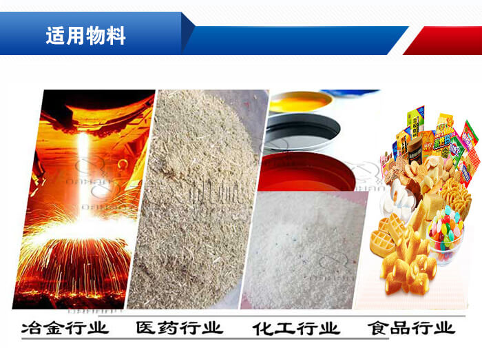 應(yīng)用范圍:化工、食品、塑料、醫(yī)藥、冶金、玻璃、建材、糧食、化肥、磨料、陶瓷等行業(yè)