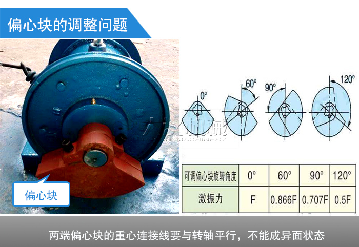 調(diào)整偏心塊時(shí),誤把兩端偏心塊的方向調(diào)反,使振動(dòng)電機(jī)產(chǎn)生個(gè)空間扭矩,使振動(dòng)電機(jī)在非正常狀態(tài)下工作,進(jìn)而引起燒毀。因此調(diào)整偏心塊時(shí),定要注意其對(duì)稱性,即兩端偏心塊要兩兩對(duì)應(yīng),或者說(shuō)是兩端偏心塊的重心連接線要與轉(zhuǎn)軸平行,不能成異面狀態(tài)。
