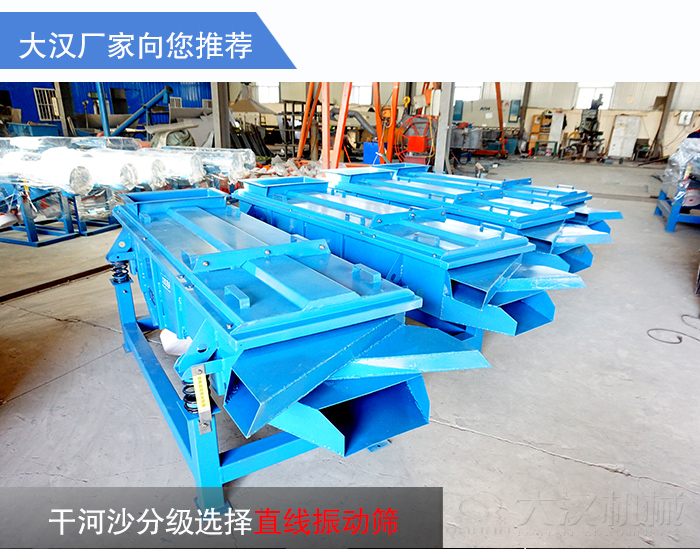 干河沙雜質(zhì)含量多,般需要使用振動篩對其進行分級除雜,那么干河沙分級選擇哪種振動篩合適呢?大漢廠家在這里為您推薦直線振動篩。