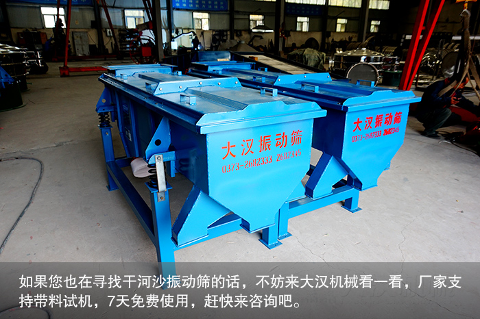 綜上,干河沙分級選用直線振動篩不僅能滿足精度要求,還能實現(xiàn)多層分級作用,篩分效率和蟬聯(lián)高,如果您也在尋找干河沙振動篩的話,不妨來大漢機械看看,廠家支持帶料試機,7天免費使用,趕快來咨詢吧。